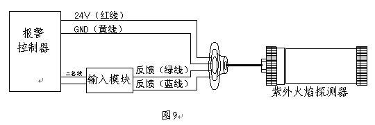 (4)JTGB-ZW-1501型核中警防爆紫外火焰感光探測(cè)器安裝接線示意圖(見圖9)