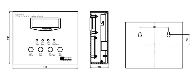四、LD128EN(D)火災(zāi)顯示盤外形與結(jié)構(gòu)尺寸圖