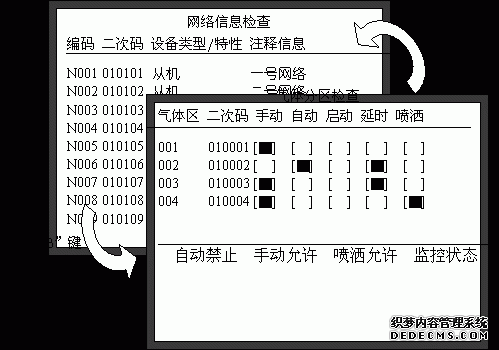 在網(wǎng)絡(luò)設(shè)備檢查界面按下“TAB”鍵,則可以在網(wǎng)絡(luò)設(shè)備檢查和氣體分區(qū)狀態(tài)檢查界面進(jìn)行切換。如圖8-8所示。